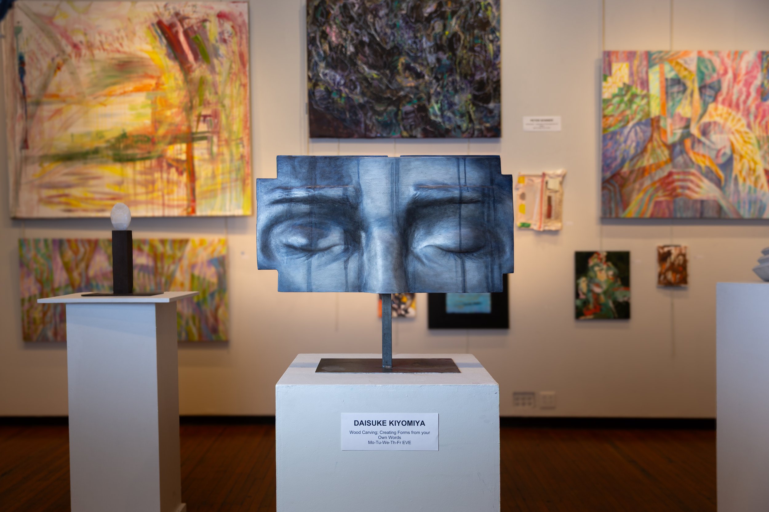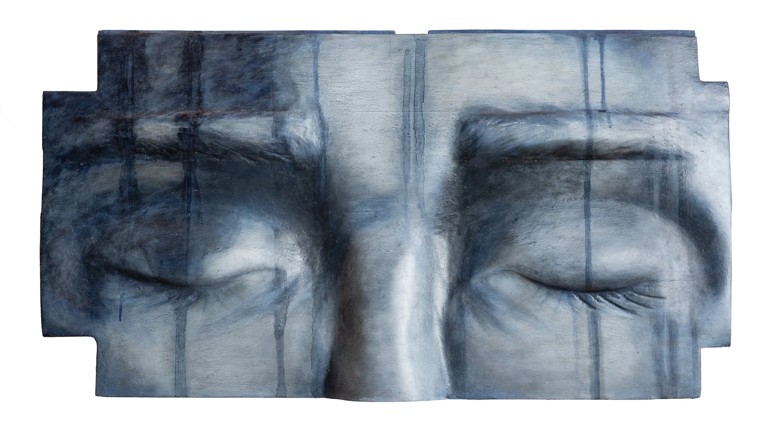 Surrendered, Rest - 17.99"x32.87"x1.97" - 2026 - hand carved spruce tone wood from the Francis Kuttner collection - chalk paint, sealers, oil paints, cold wax, detachable steel base